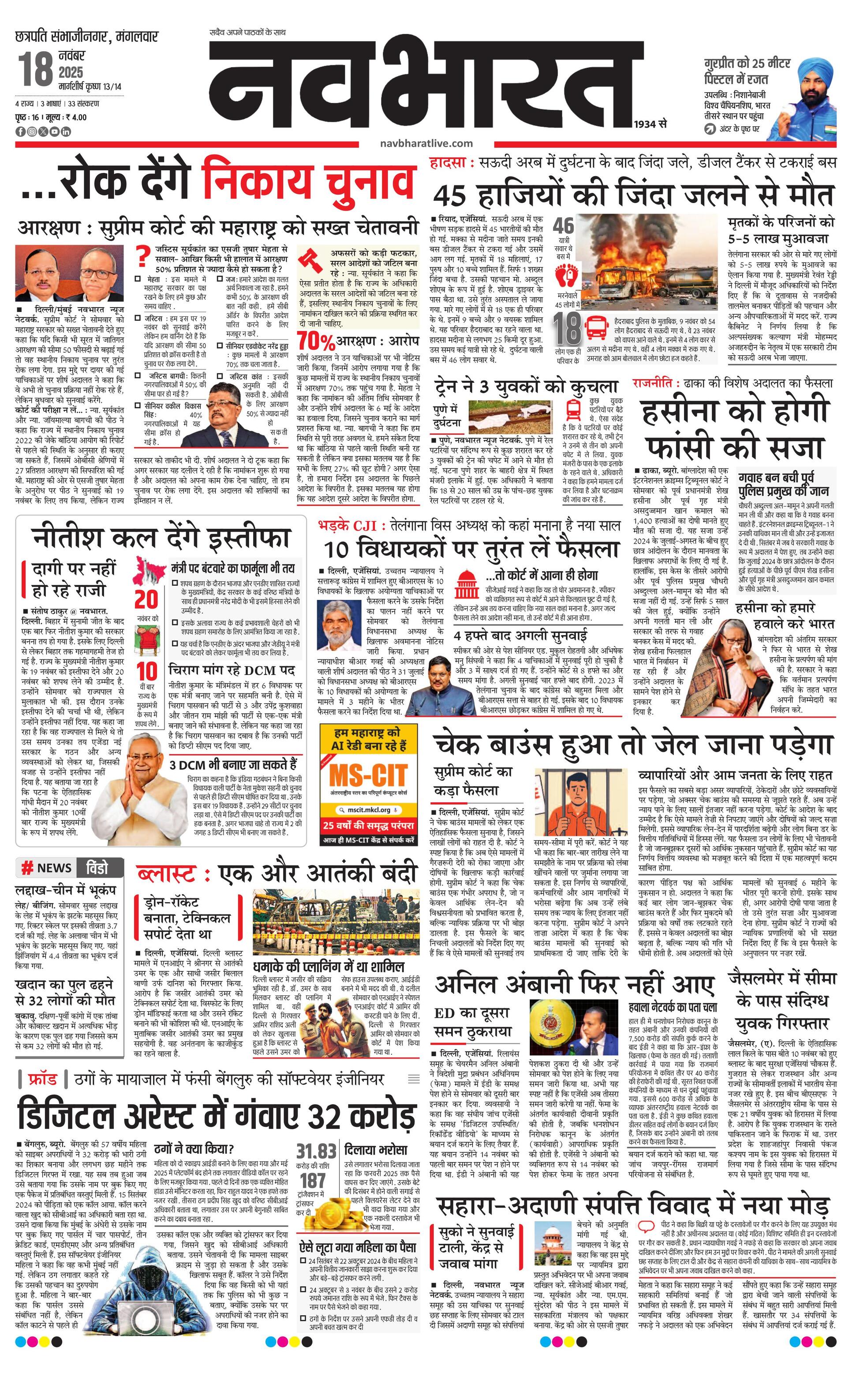 Chhasambhajinagarmain E-paper | 2025-11-18 | Page 1 | Navbharatlive