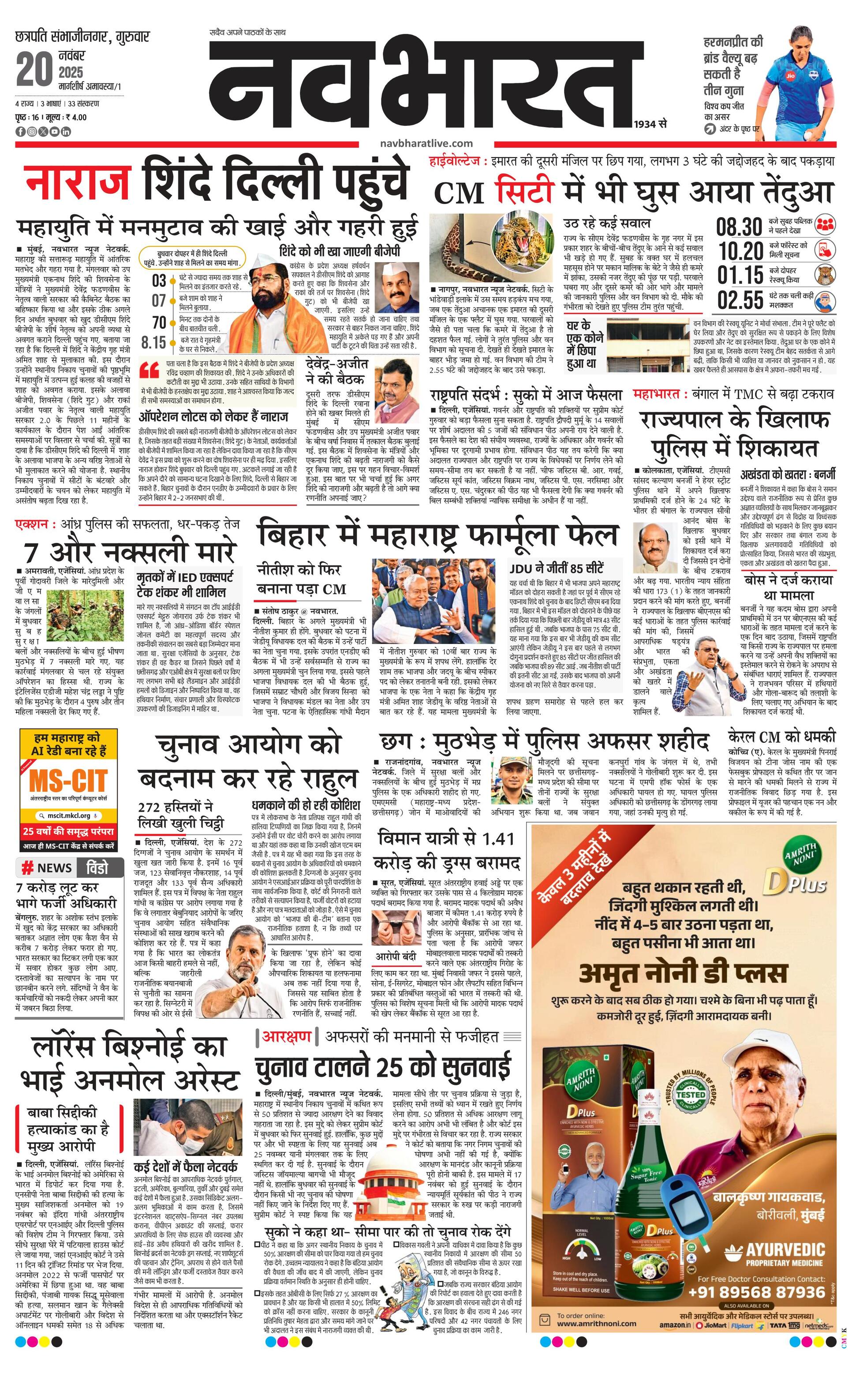 Chhasambhajinagarmain E-paper | 2025-11-20 | Page 1 | Navbharatlive