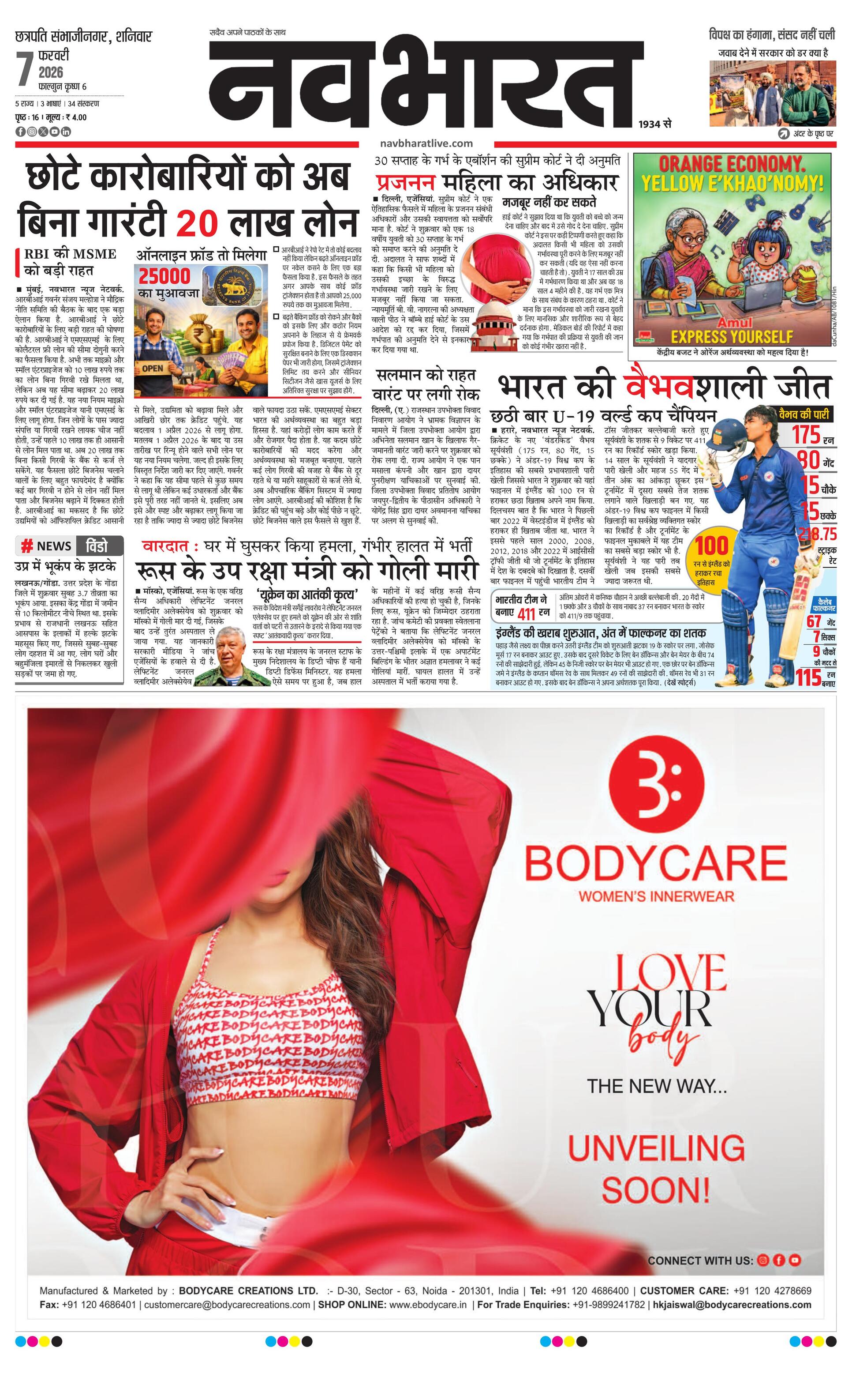 Chhasambhajinagarmain E-paper | 2026-02-07 | Page 1 | Navbharatlive