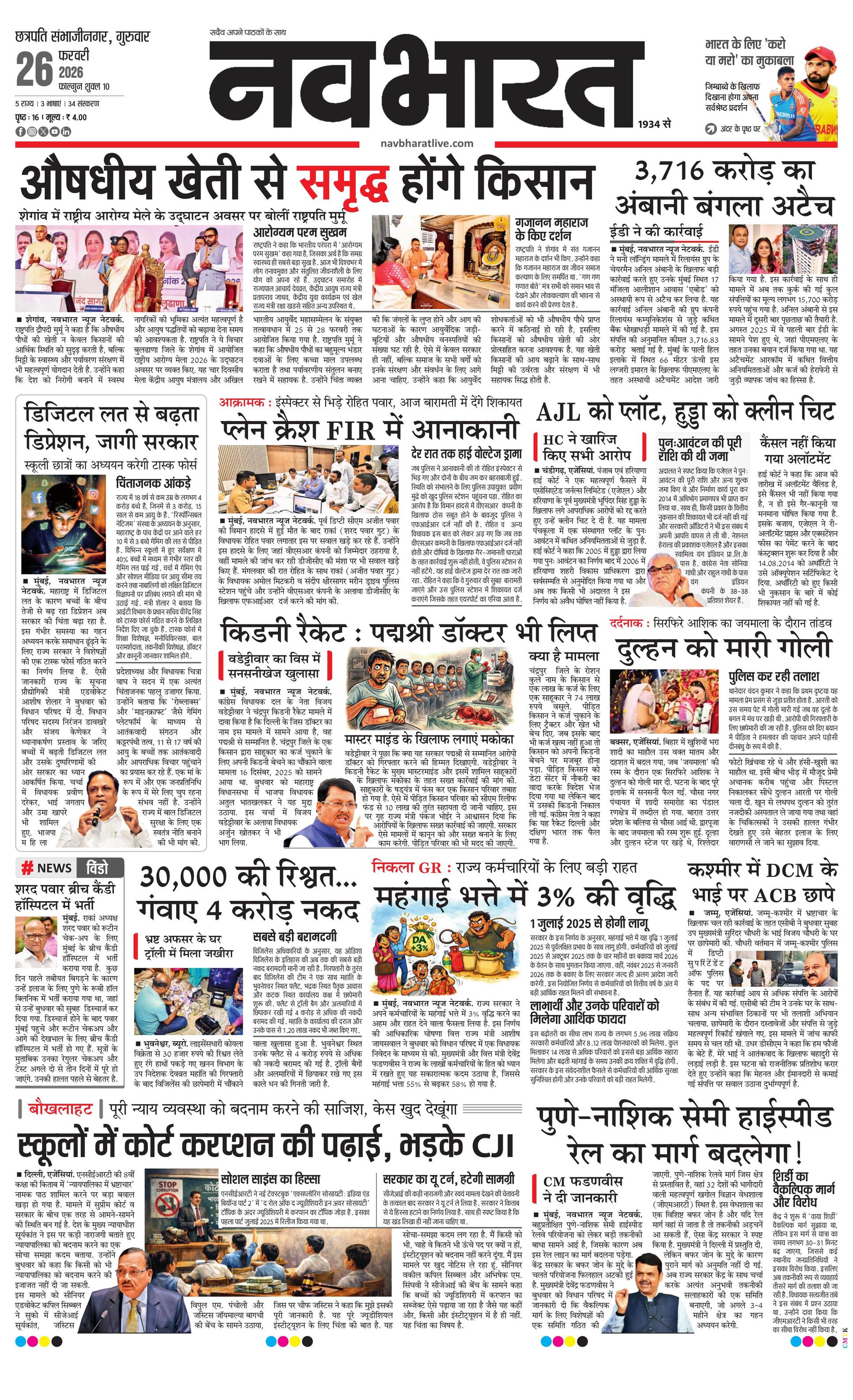Chhasambhajinagarmain E-paper | 2026-02-26 | Page 1 | Navbharatlive