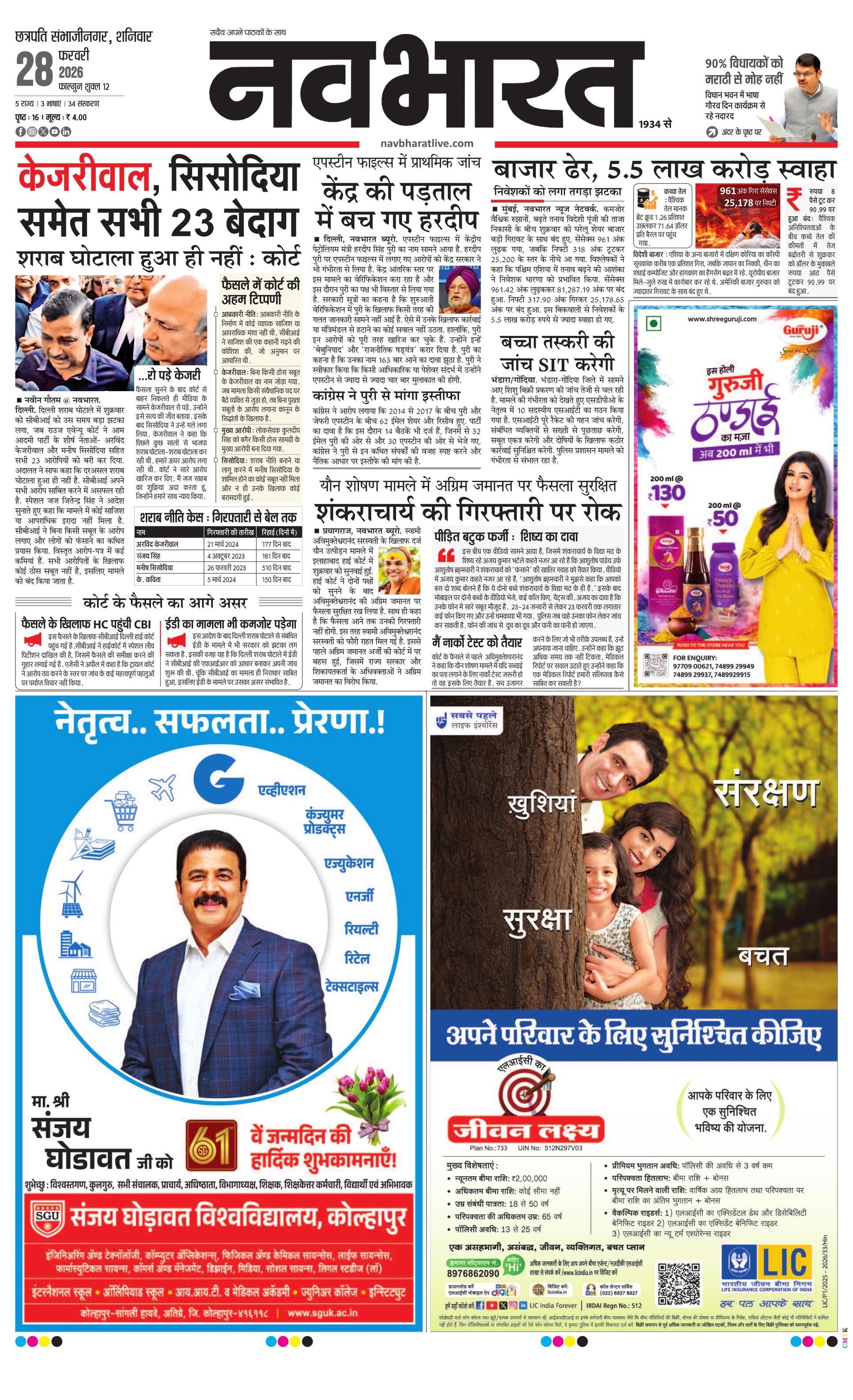 Chhasambhajinagarmain E-paper | 2026-02-28 | Page 1 | Navbharatlive