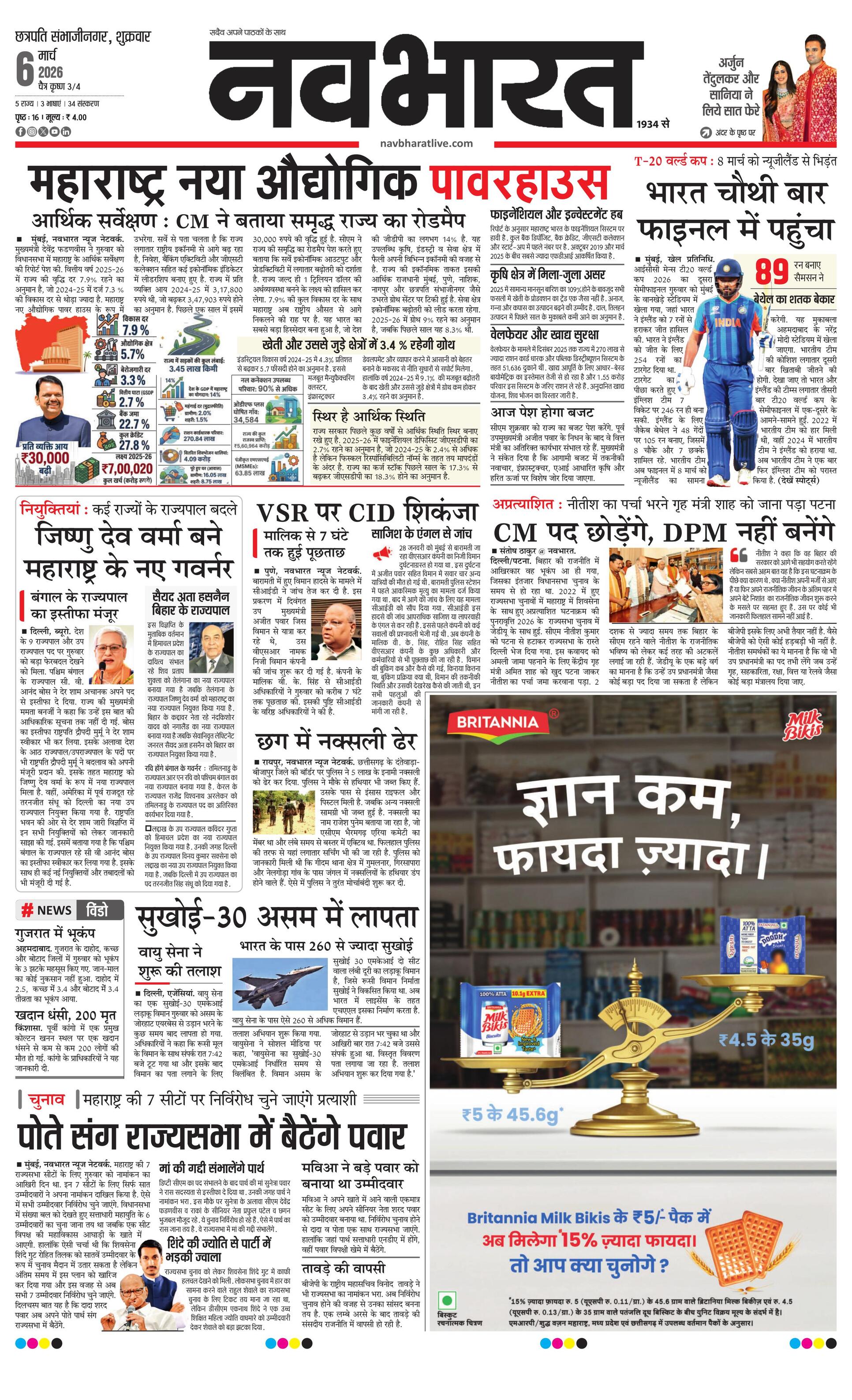 Chhasambhajinagarmain E-paper | 2026-03-06 | Page 1 | Navbharatlive