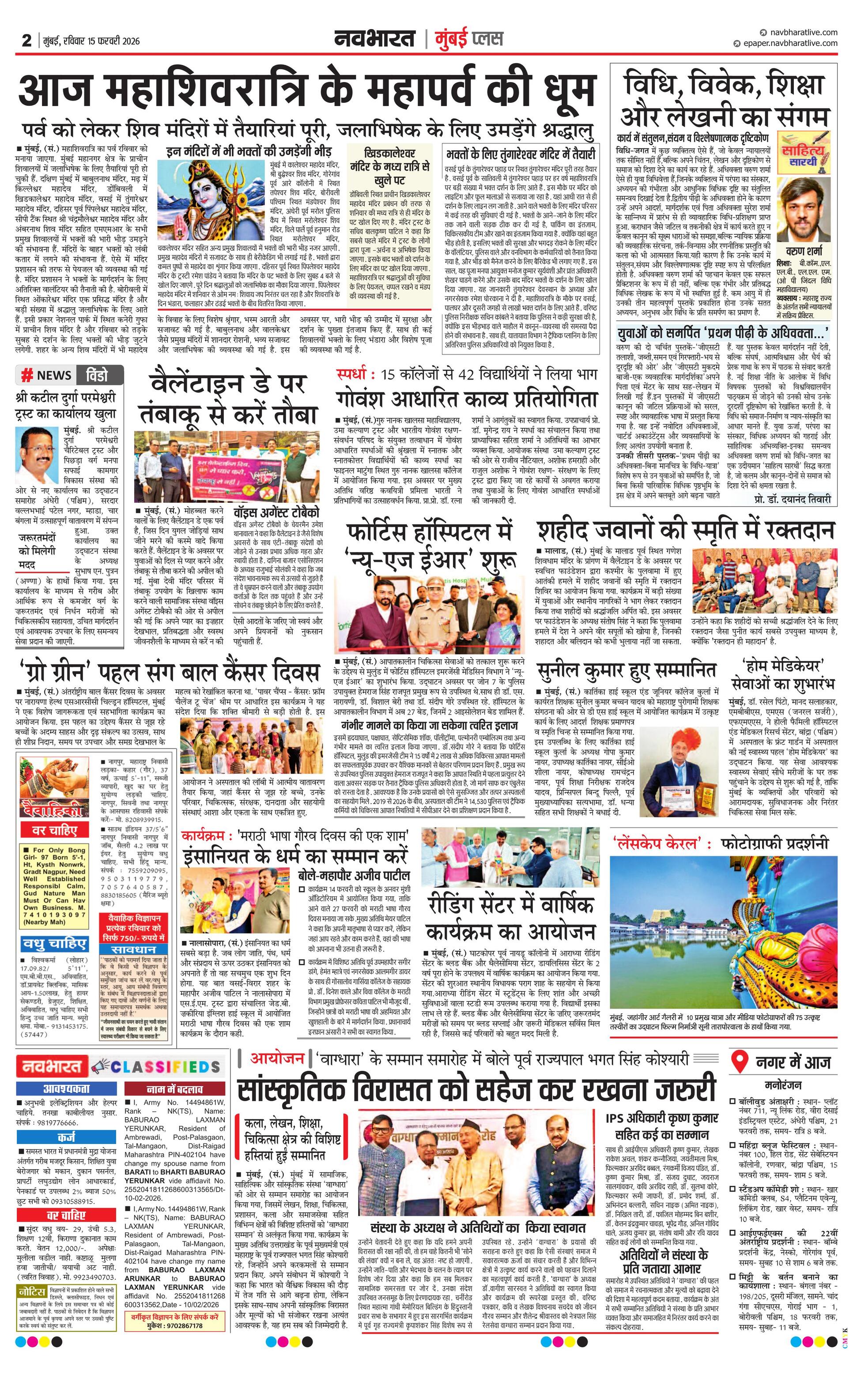 Mumbaiplus E-paper | 2026-02-15 | Page 1 | Navbharatlive