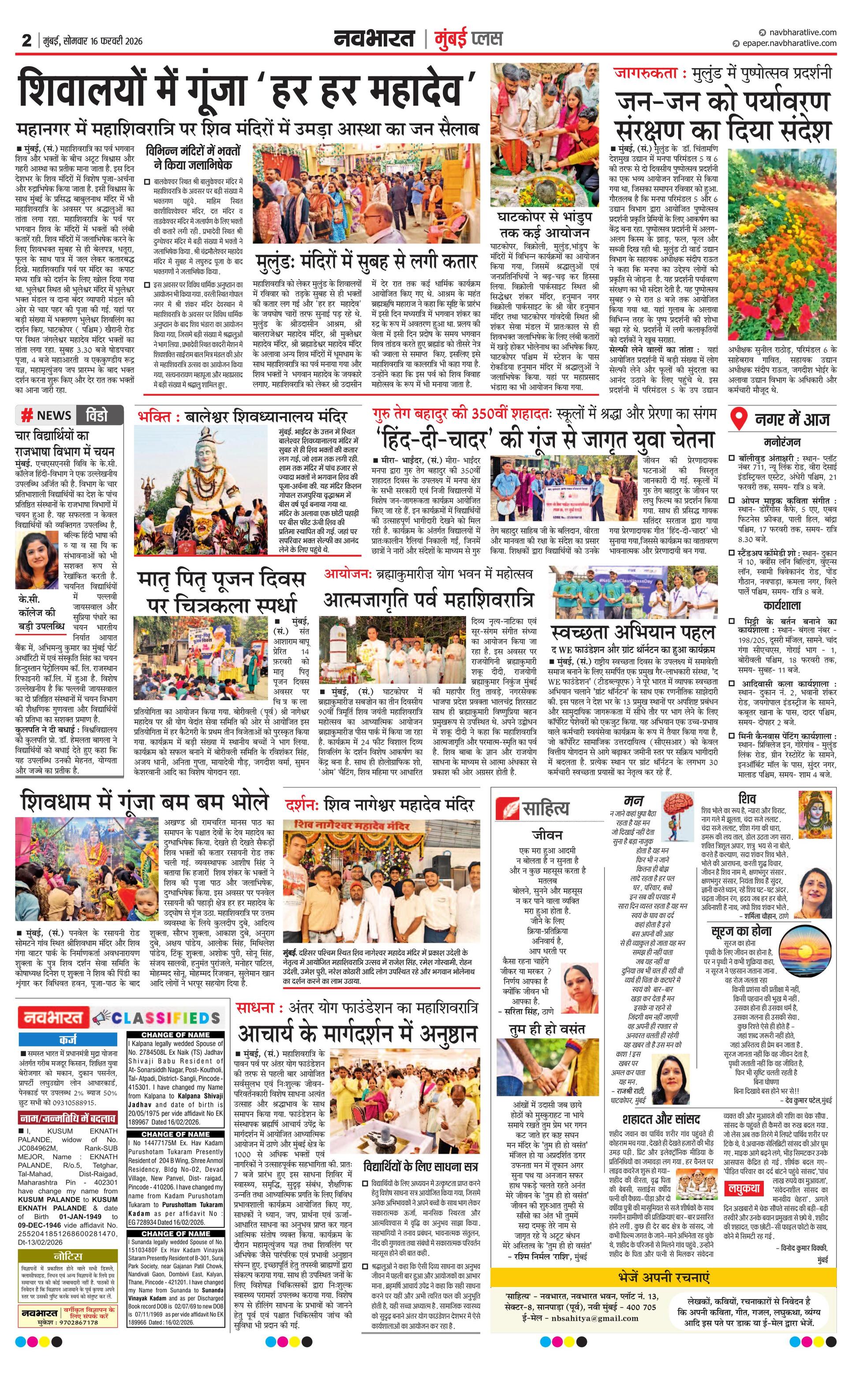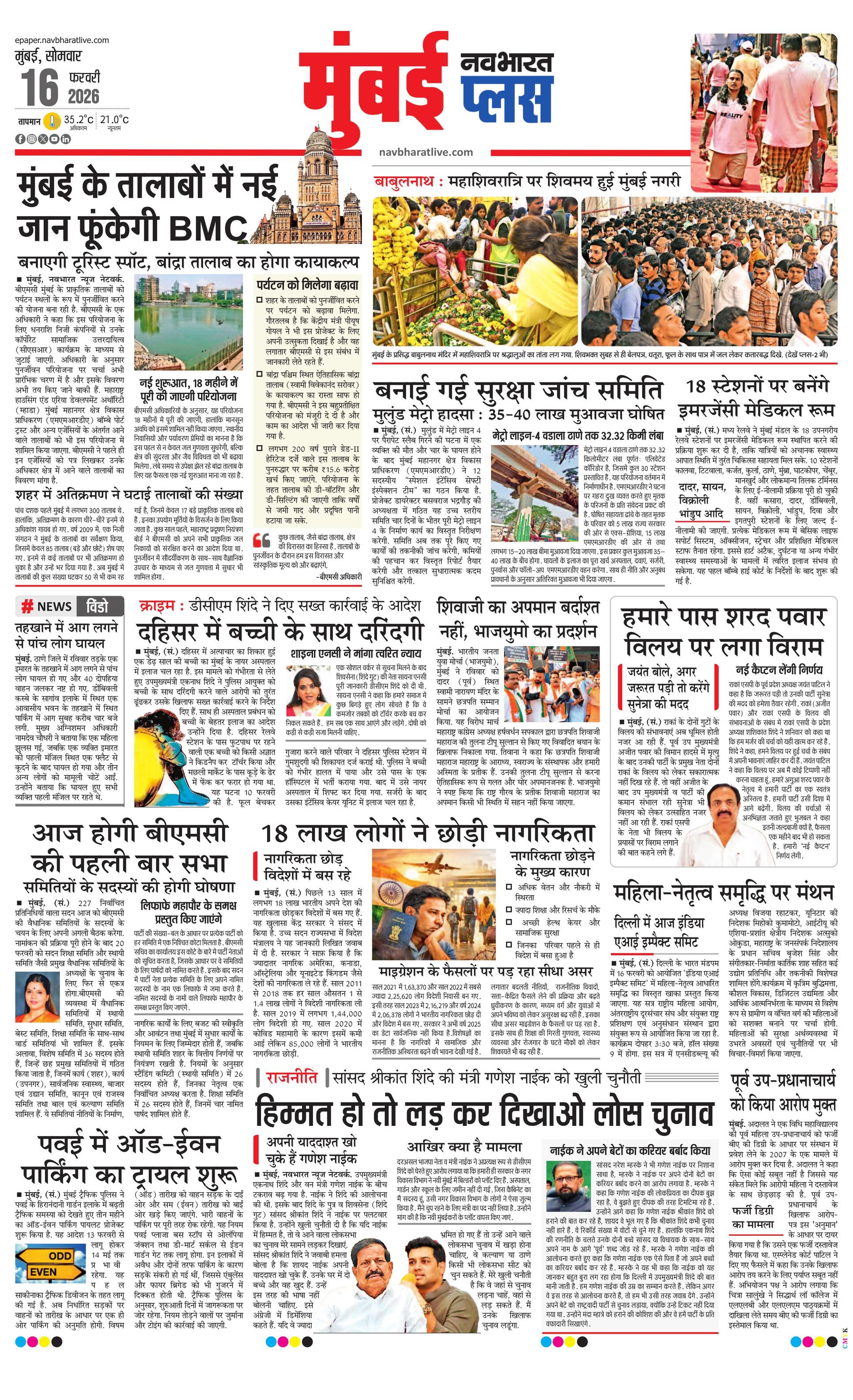 Mumbaiplus E-paper | 2026-02-16 | Page 1 | Navbharatlive