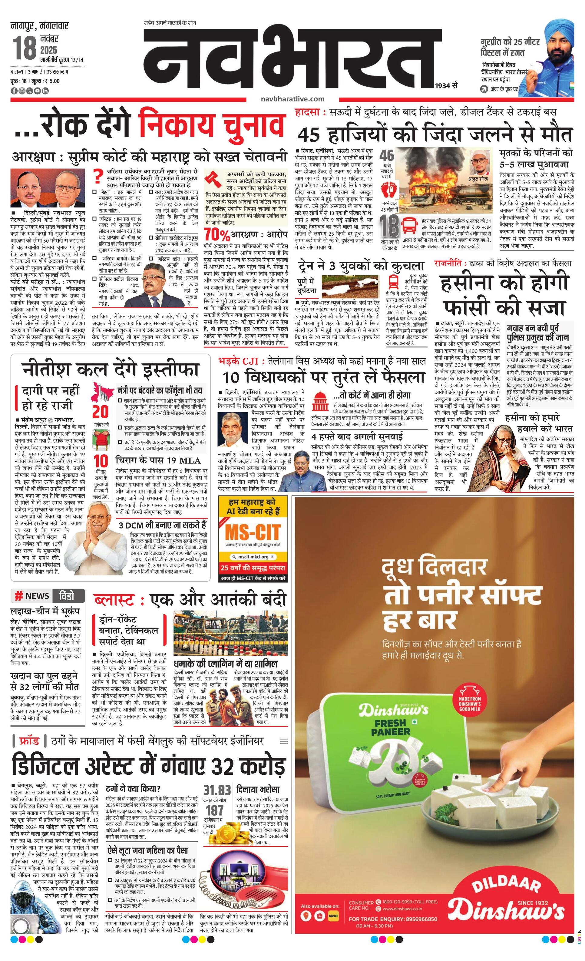 Nagpur E-paper | 2025-11-18 | Page 1 | Navbharatlive