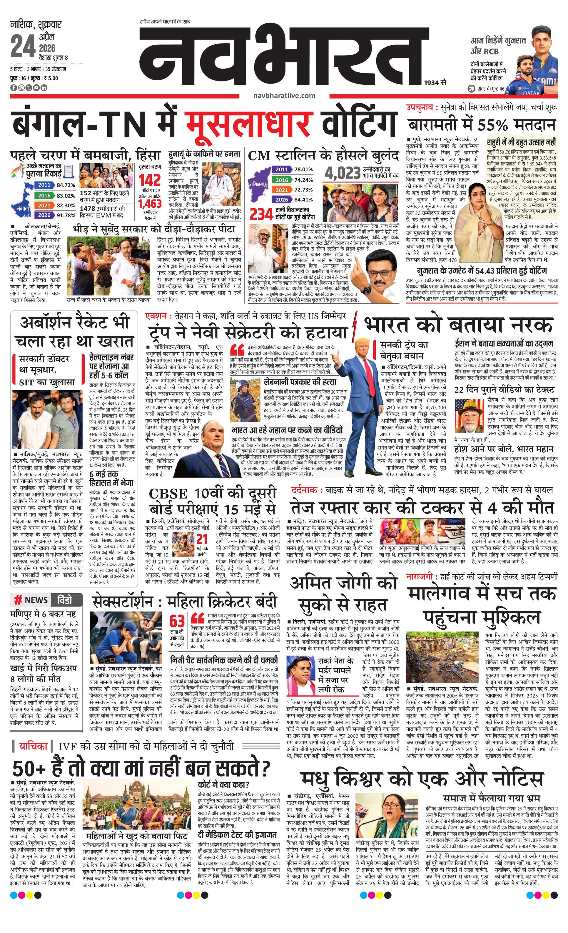 Nashik E-paper | 2026-04-24 | Page 1 | Navbharatlive