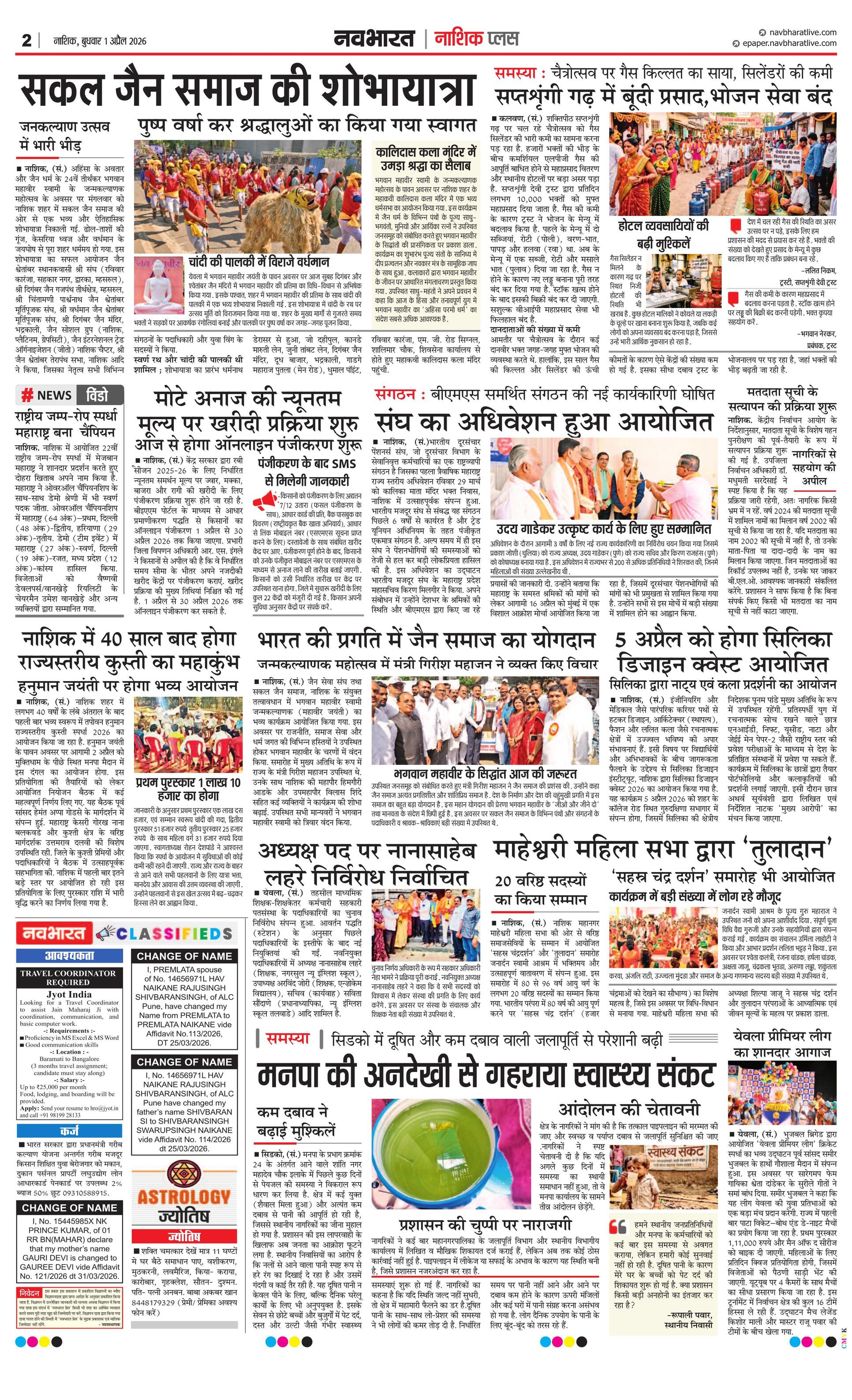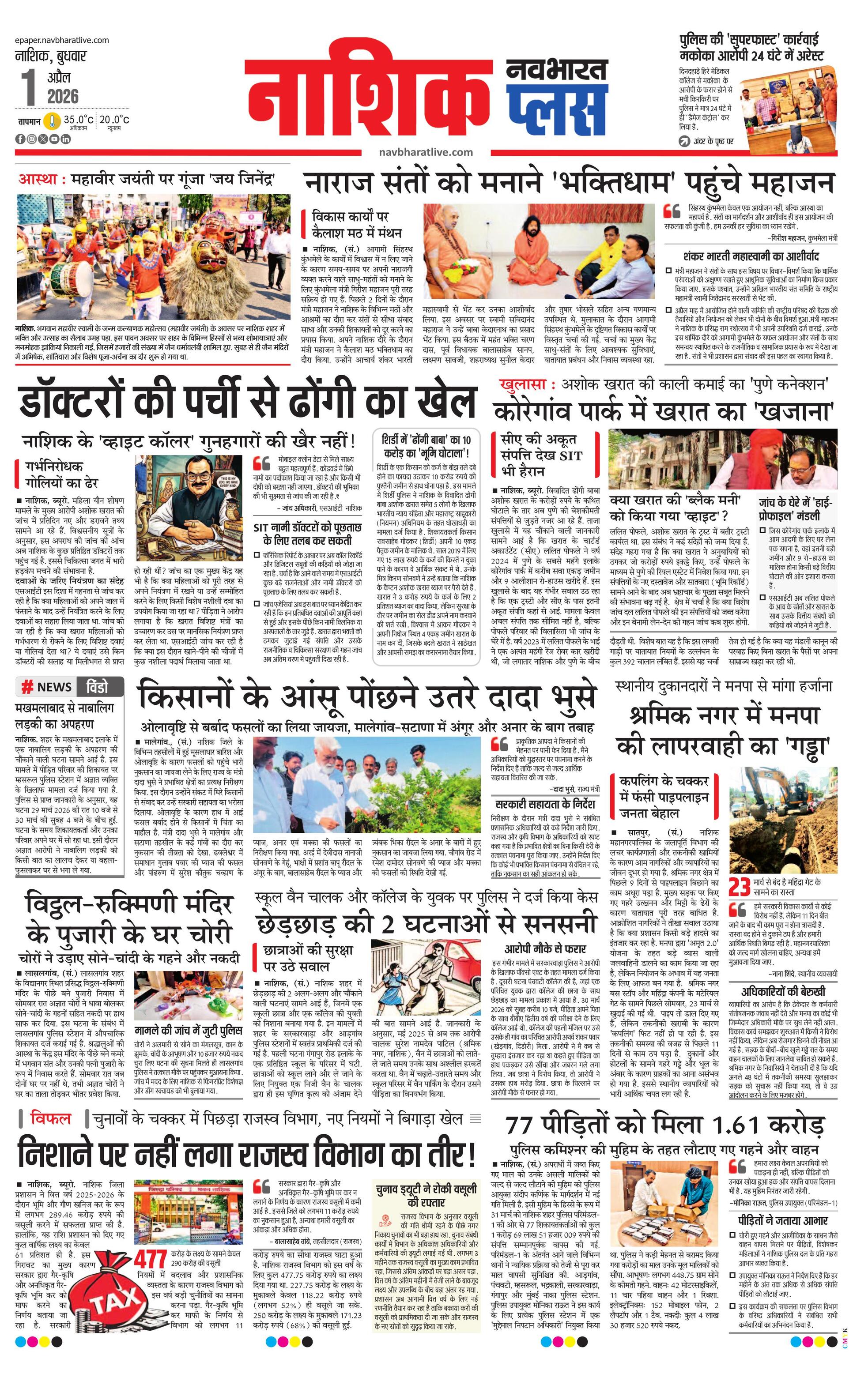Nashikpus E-paper | 2026-04-01 | Page 1 | Navbharatlive