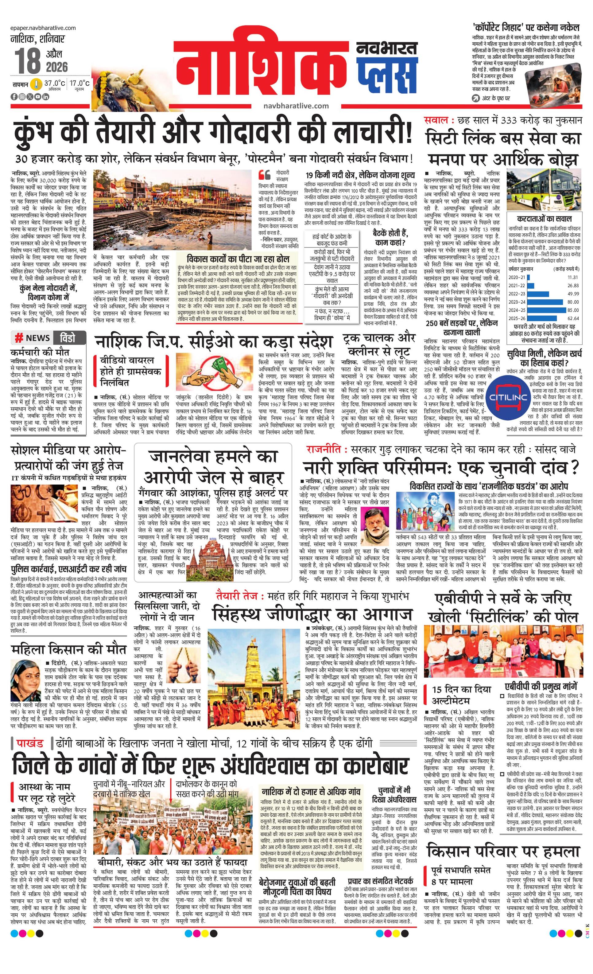 Nashikpus E-paper | 2026-04-18 | Page 1 | Navbharatlive